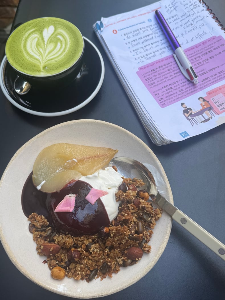 Ma commande indéfectible : granola maison et matcha au lait d’avoine au Café Berry.
